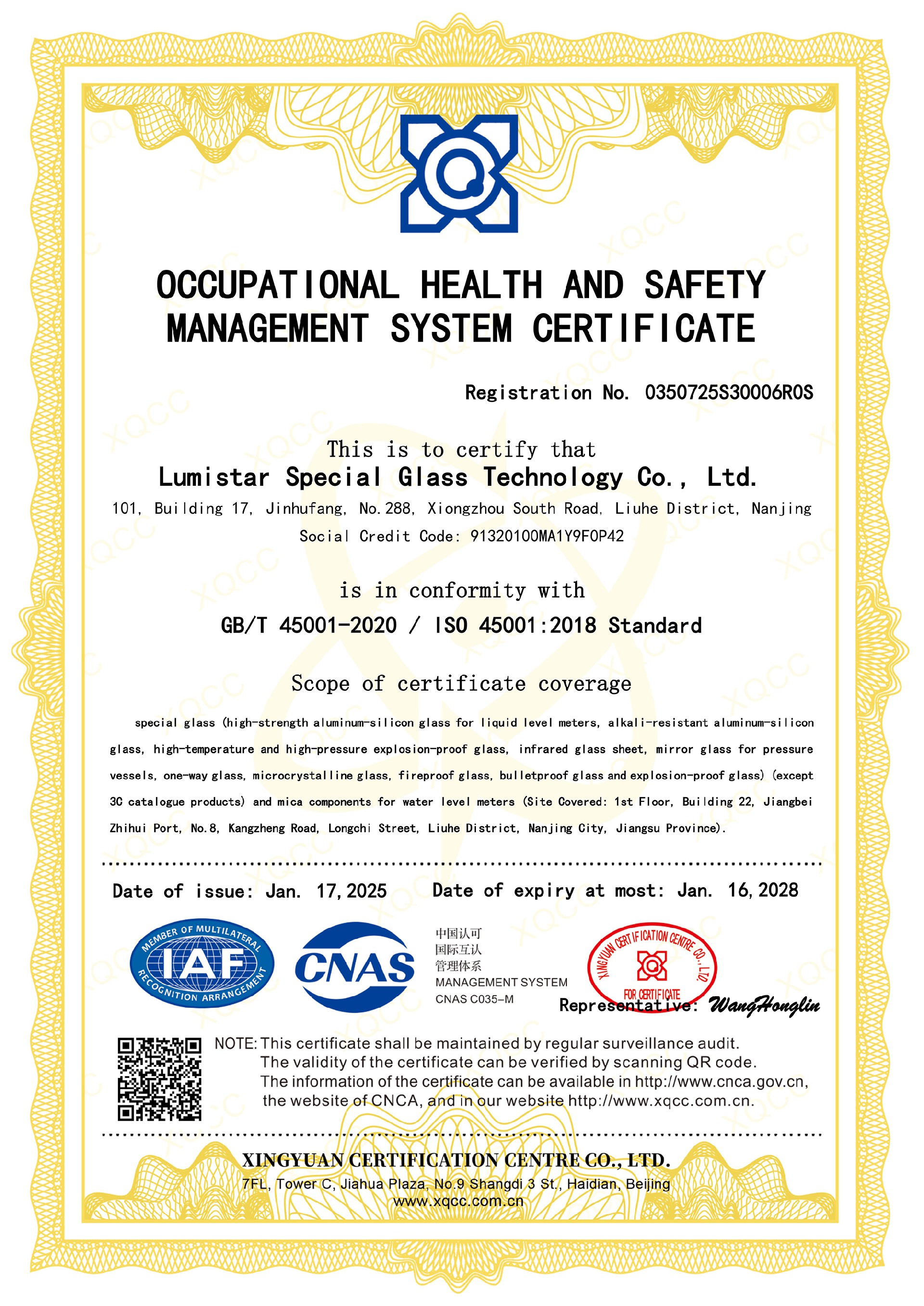 職業(yè)健康安全管理體系認(rèn)證證書(shū)